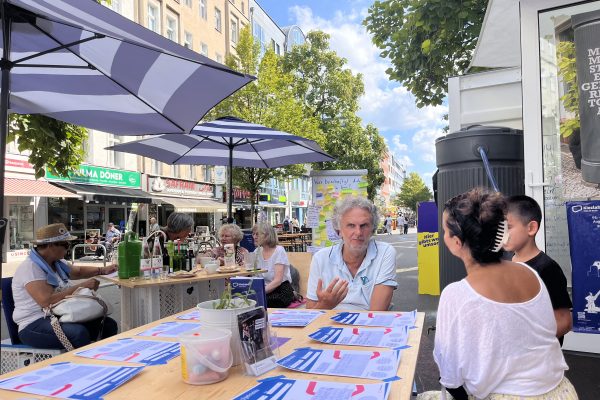 Im August verwandelte sich das Kiezlabor für elf Tage in einen lebhaften Treffpunkt auf der Wilmersdorfer Straße, wo das Thema Bewegung im Mittelpunkt stand. Mit einem Kräuterspaziergang, einem Audiowalk zur Charlottenburger Mottenwelt und inspirierenden Gesprächen mit Passant:innen brachten wir gemeinsam neue Ideen und Perspektiven in den Kiez.